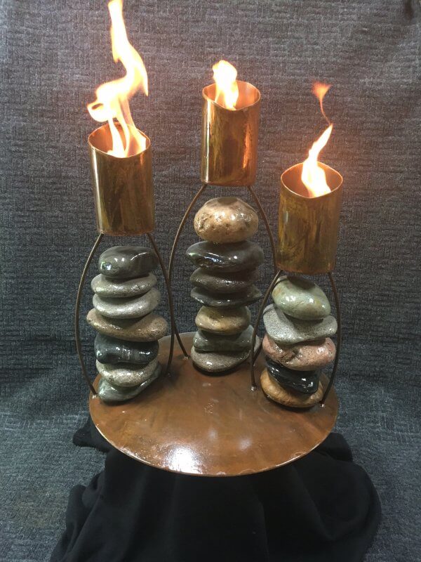 I make mobiles and wall hangings using steel wire and painted and gilded sheet metal. Additional materials include copper and lucite shapes.