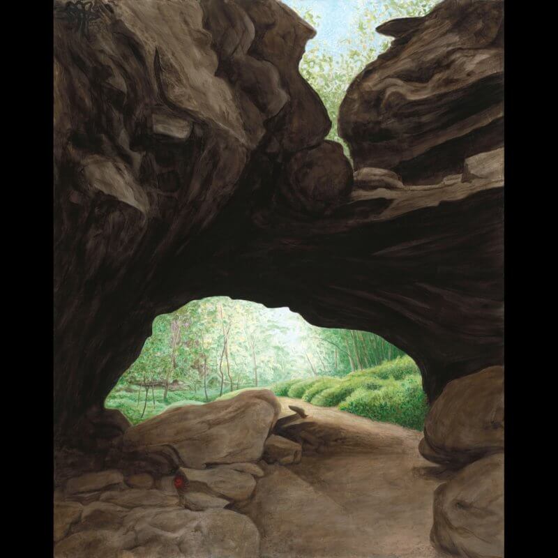 Acrylic on canvas. Dozens of hand brushed layers of translucent paint imbue depth and luminosity. Many pieces have over 30 layers of glaze, creating captivating refractive effects unusual in acrylics.