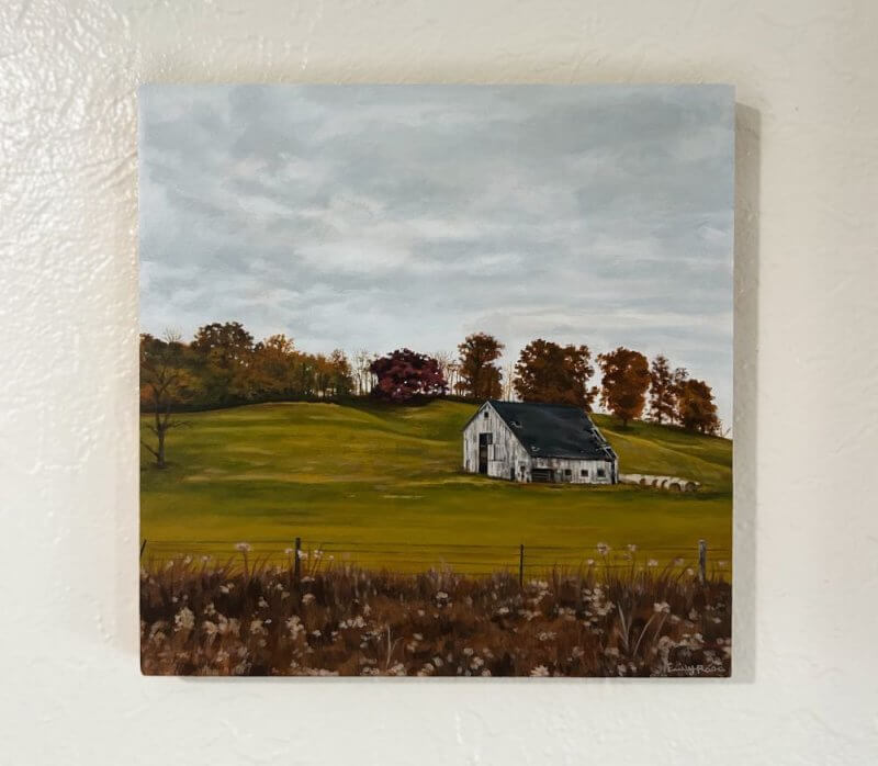 I work with mainly acrylic paint, but also watercolor and pencil. I vary between loose abstract looks to fine detailed pieces, using complimentary colors to draw you into the scene.