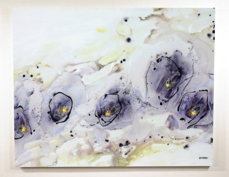 My paintings consist of repurposed materials as a base that I then apply acrylic, oil, spray, graphite, and watercolor paint using brushes, sticks, splatters, spray cans, scraping, and drawing.