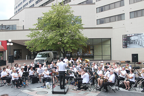 The Iowa City Community Band is a volunteer organization, approved and sanctioned by the city of Iowa City. Our concerts in Iowa City and Coralville parks during June and July include a mixture of marches, music from Broadway musicals, and old favorites and sometimes feature a guest soloist. Concerts are either in the afternoon on Sunday or early evening during the week – select the “Concerts” tab above for current dates, times, and locations. The band also plays concerts at various venues in the Iowa City area, including Arts Fest in downtown Iowa City, Ice Cream Social in Upper City Park in Iowa City, Coralville Thursday Night Concert Series, and Coralville’s Fourth of July Celebration. We have also performed at events in area towns such as North Liberty Fun Days and West Branch Friday Night Concert Series. The ICCB also presents a winter holiday concert in the Englert Theatre in downtown Iowa City .Members of the ICCB come from all walks of life in the Iowa City area, ranging from high school students through retirees. Our conductor is Rob Medd, Director of Music, Iowa City West High. The ICCB has performed continuously since 1982. Our concerts are free to the public.